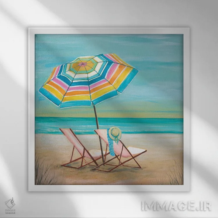 «دوتایی کنار دریا II» اثرِ «جولی جوی (لقب هنری)» با حالوهوای این اثر و لحنِ دکور ساحلی، فضا را روشنتر و سبکتر نشان میدهد—مناسبِ نشیمنهای آفتابگیر.