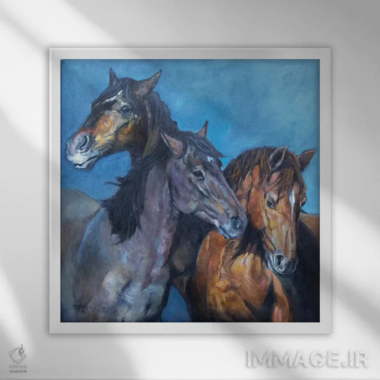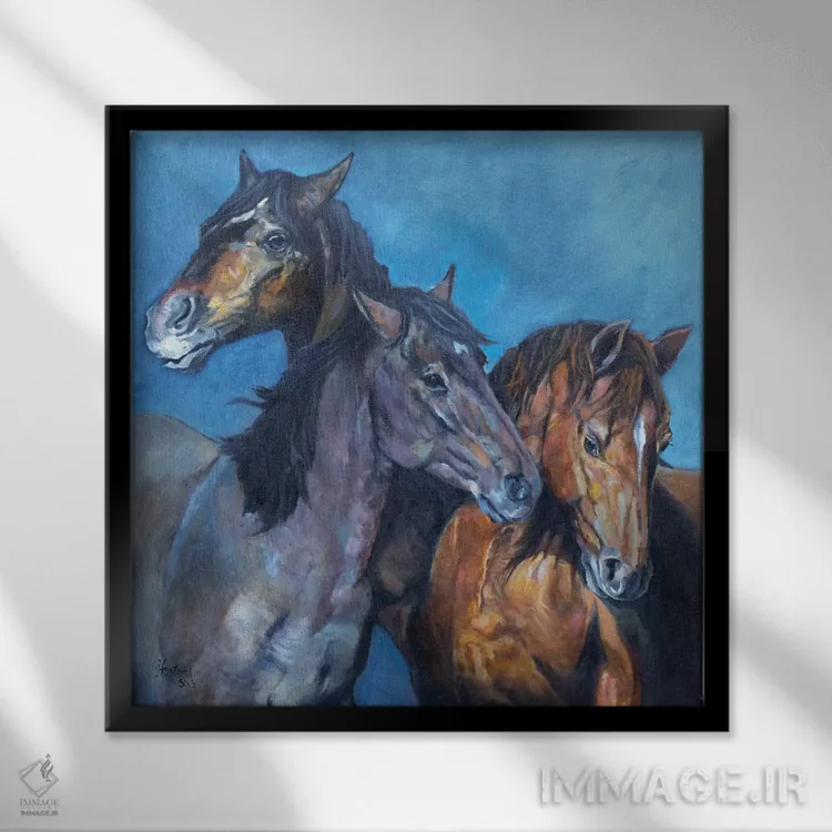 براساس پالت ترکیبی اثر، قاب تیک گرم (چوبی) پیشنهاد اول است و مشکی مات (فریم متوسط) مکمل. برای سفارشهای پروژهای با ابعاد و قابهای اختصاصی با ایماژ در تماس باشید.