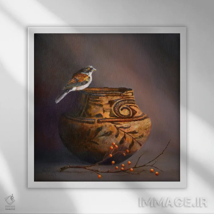 براساس پالت گرم اثر، قاب تیک گرم (چوبی) پیشنهاد اول است و مشکی مات (فریم متوسط) مکمل. برای سفارشهای پروژهای با ابعاد و قابهای اختصاصی با ایماژ در تماس باشید.