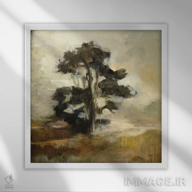 براساس پالت گرم اثر، قاب بلوط روشن (چوبی) پیشنهاد اول است و استخوانی ملایم مکمل. برای سفارشهای پروژهای با ابعاد و قابهای اختصاصی با ایماژ در تماس باشید.