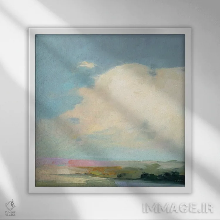 براساس پالت گرم اثر، قاب بلوط روشن (چوبی) پیشنهاد اول است و استخوانی ملایم مکمل. برای سفارشهای پروژهای با ابعاد و قابهای اختصاصی با ایماژ در تماس باشید.