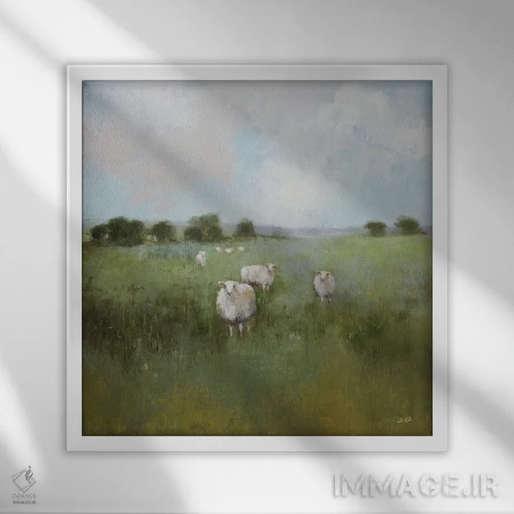 تابلو انتزاعی چراگاه اثر جولیا پورینتون - نمای قاب‌دار سفید
