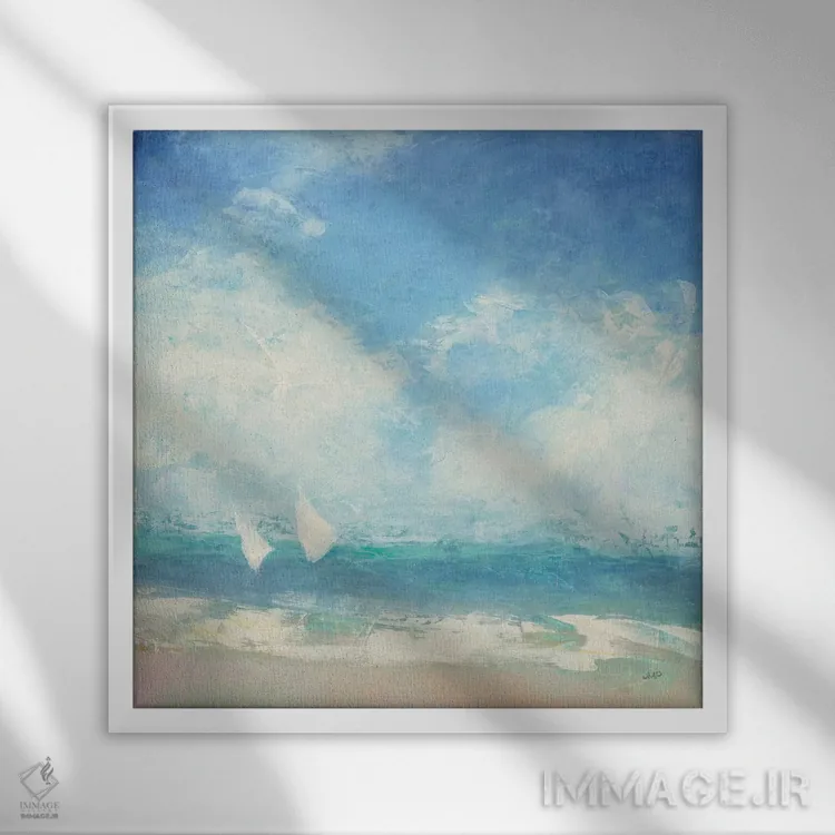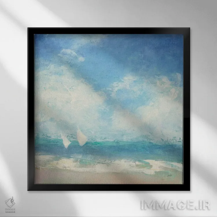 براساس پالت سرد اثر، قاب سفید مات (فریم باریک) پیشنهاد اول است و نقرهای برسخورده (متالیک) مکمل. برای سفارشهای پروژهای با ابعاد و قابهای اختصاصی با ایماژ در تماس باشید.