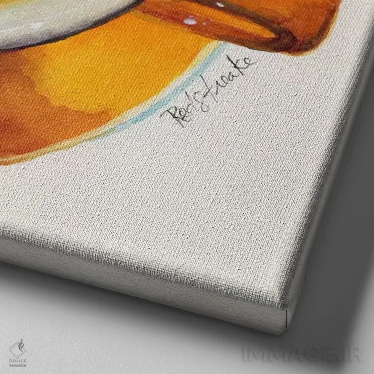 تابلو مینیمال فنجان قهوه زرد اثر جنیفر رداستریک - نمای نزدیک بافت بوم