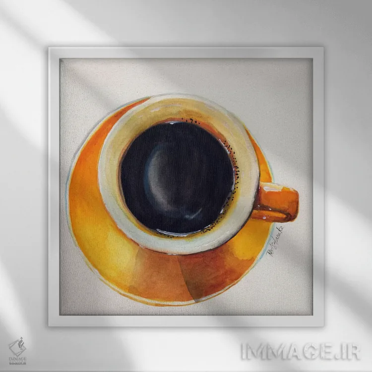 تابلو مینیمال فنجان قهوه زرد اثر جنیفر رداستریک