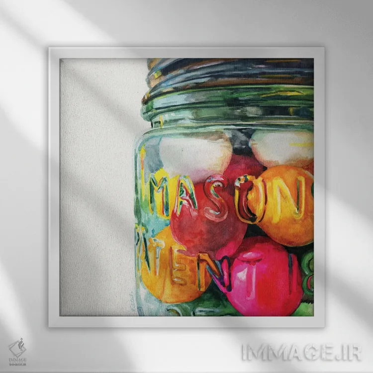 این تابلو با عنوان «شیشه پر از آدامس رنگی» اثرِ «جنیفر رداستریک»، حسِ گرم و صمیمی به فضا میدهد.