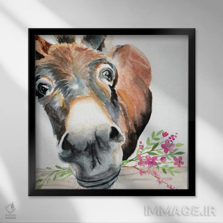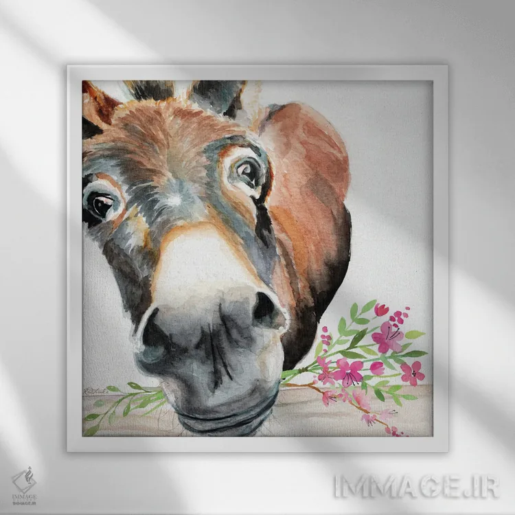 تابلو دکوراتیو الاغ با گل ها اثر جنیفر رداستریک