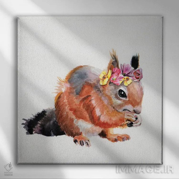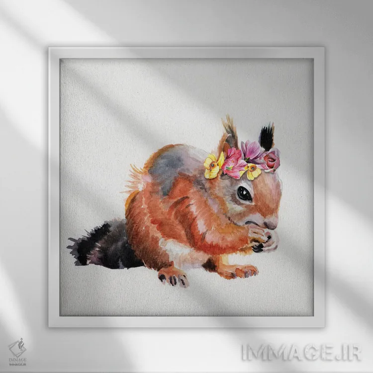 تابلو دکوراتیو سنجاب قرمز با گل ها اثر جنیفر رداستریک