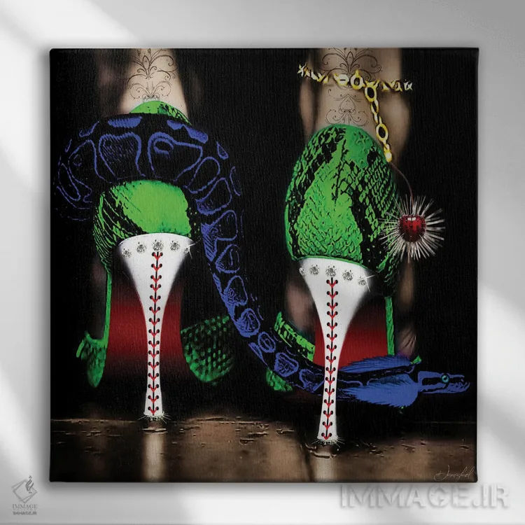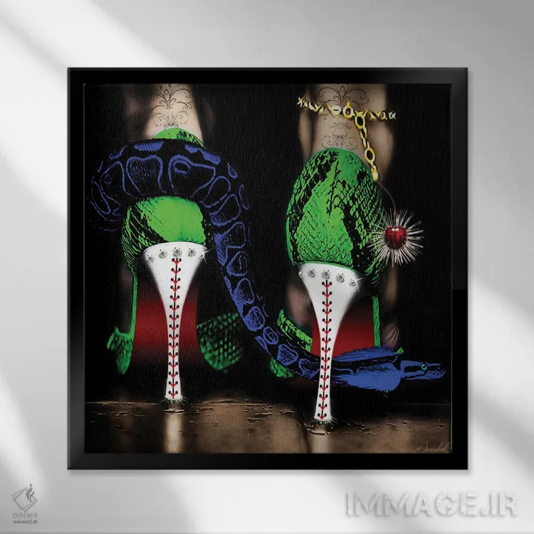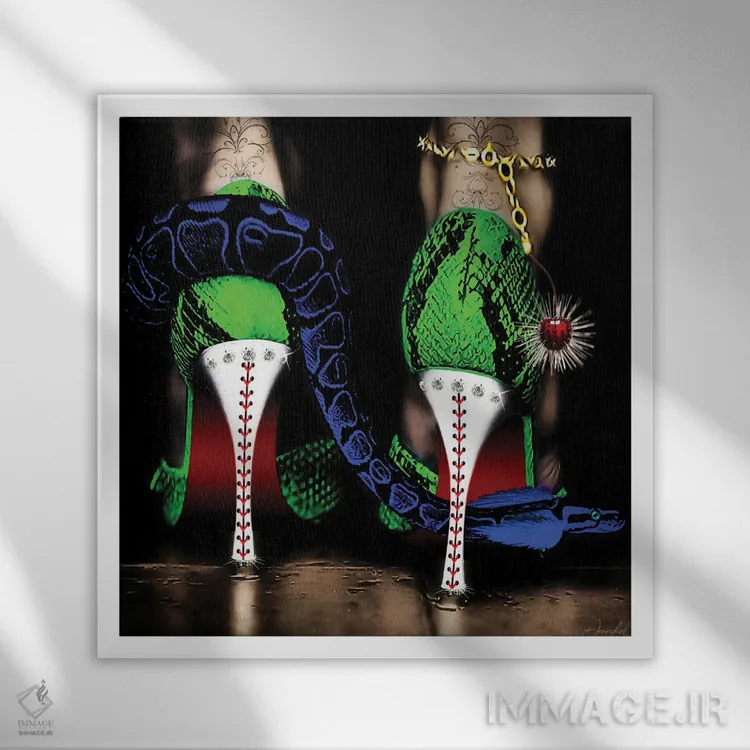 تابلو دکوراتیو کفش پاشنه بلند سبز اثر یان رافائل