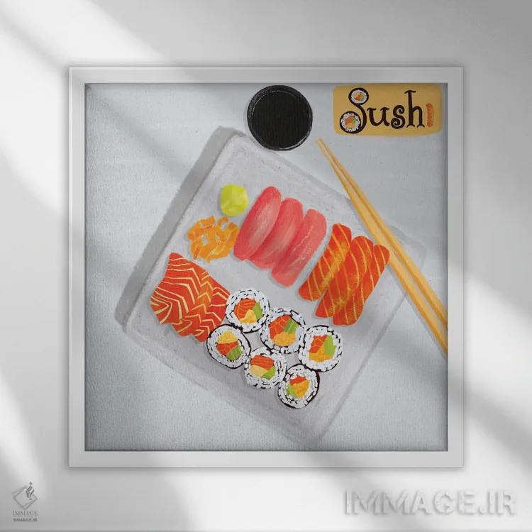 براساس پالت ترکیبی اثر، قاب تیک گرم (چوبی) پیشنهاد اول است و مشکی مات (فریم متوسط) مکمل. برای سفارشهای پروژهای با ابعاد و قابهای اختصاصی با ایماژ در تماس باشید.