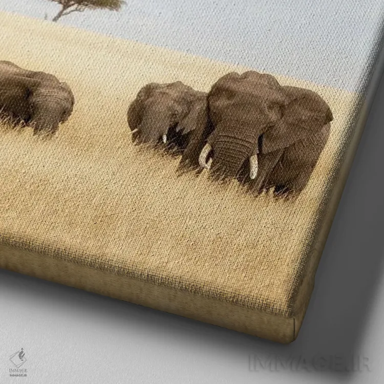 تابلو دکوراتیو گروه فیل ها در چمنزار ماسایی مارا اثر جین ریکس