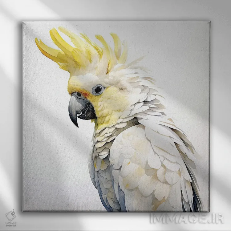 تابلو دکوراتیو کاکاتوی تاج زرد گوگردی با آبرنگ اثر جین ریکس - نمای پرسپکتیو محصول