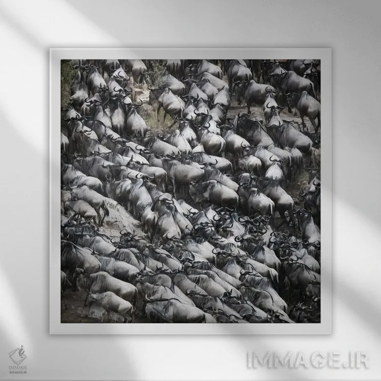 در «کل یالدار در حال خروج از رود مارا»، اثرِ «جین ریکس» این اثر را با زبان سیاهوسفید ارائه میکند؛ برای دکورهای کلاسیک—مدرن یک انتخاب مطمئن و هماهنگپذیر است.