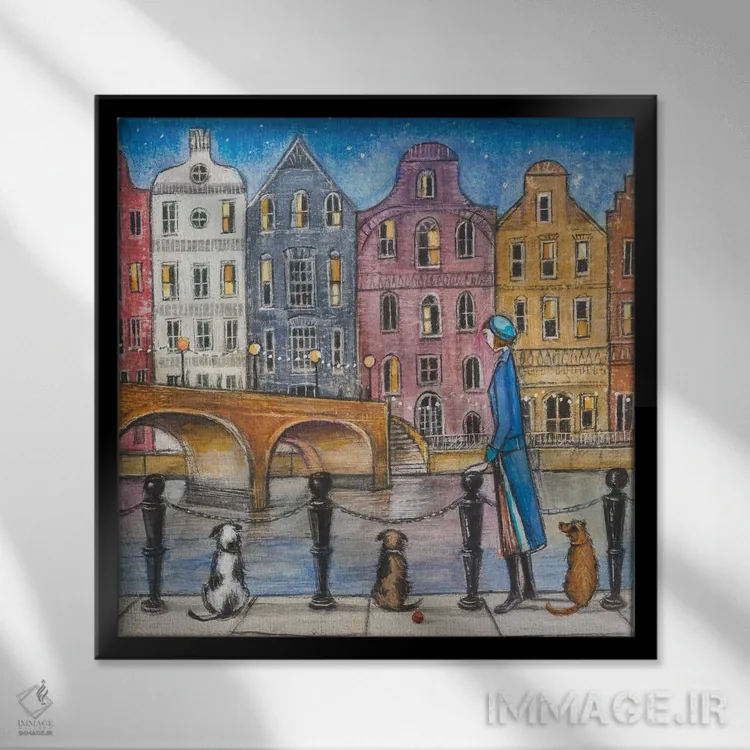 براساس پالت ترکیبی اثر، قاب تیک گرم (چوبی) پیشنهاد اول است و مشکی مات (فریم متوسط) مکمل. برای سفارشهای پروژهای با ابعاد و قابهای اختصاصی با ایماژ در تماس باشید.