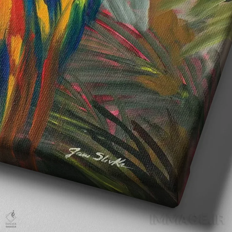 «طوطیها کنار خلیج I» اثرِ «جین اسلیوکا» میتواند برای دکورهای مینیمال، یک نقطهٔ توجه بسازد؛ برای راهروها و ورودیهای گرم پیشنهاد میشود. هر بار نگاهش میکنید، یک جزئیات تازه به چشم میآید.