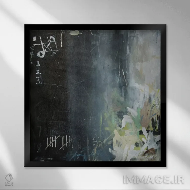 تابلو انتزاعی یکی را با گچ بنویس اثر جولیان اسپنسر - نمای قاب‌دار مشکی