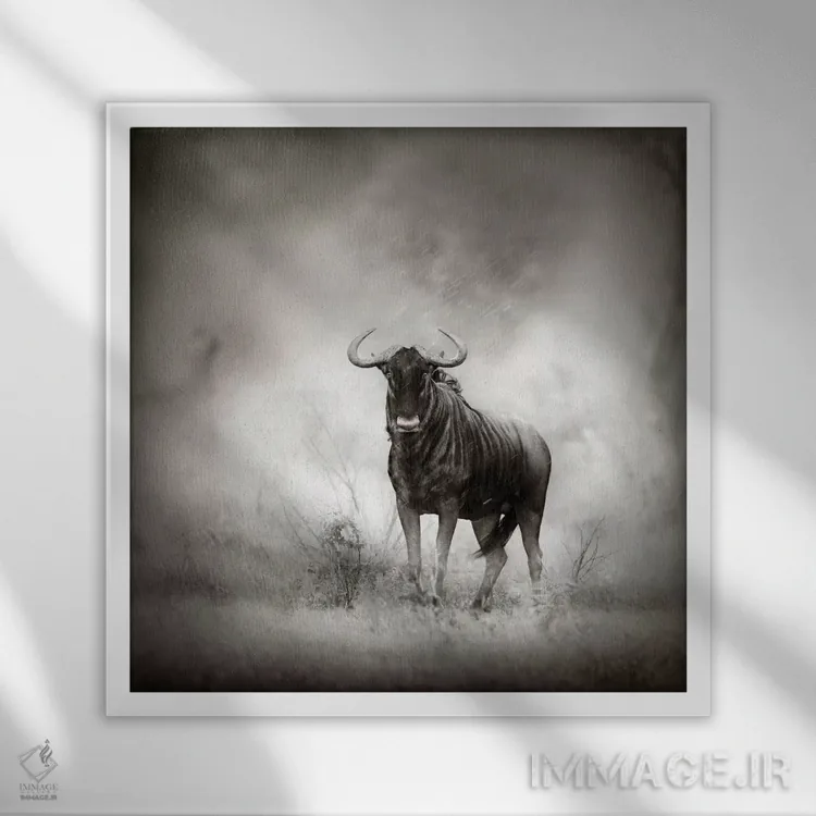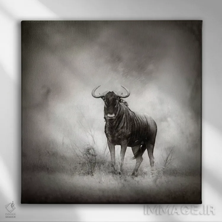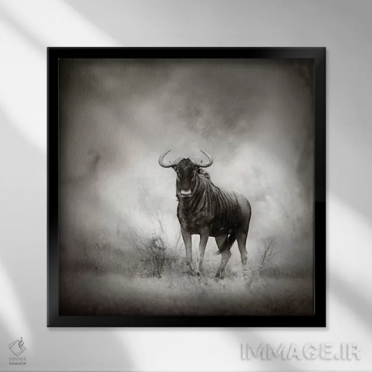 تابلو دکوراتیو گاو وحشی آبی در طوفان باران اثر یوهان سوانپوئل