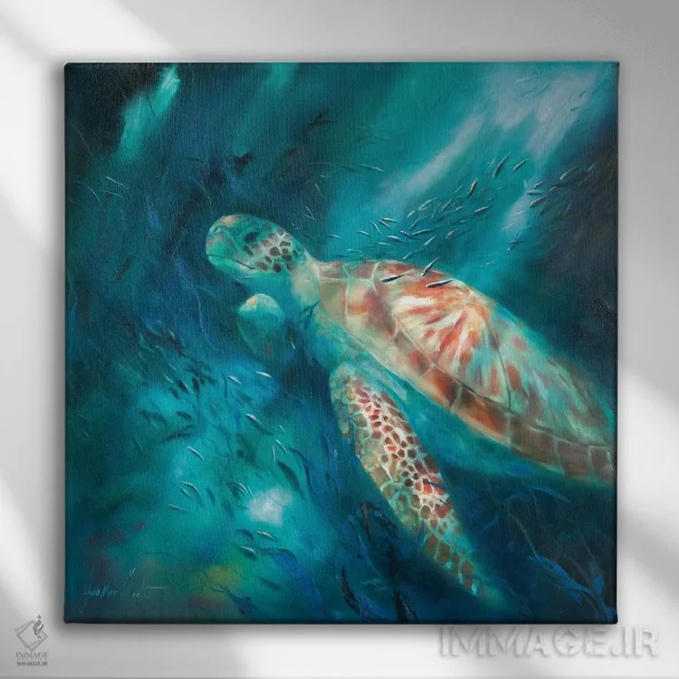 براساس پالت ترکیبی اثر، قاب تیک گرم (چوبی) پیشنهاد اول است و مشکی مات (فریم متوسط) مکمل. برای سفارشهای پروژهای با ابعاد و قابهای اختصاصی با ایماژ در تماس باشید.