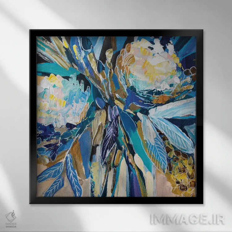 براساس پالت ترکیبی اثر، قاب تیک گرم (چوبی) پیشنهاد اول است و مشکی مات (فریم متوسط) مکمل. برای سفارشهای پروژهای با ابعاد و قابهای اختصاصی با ایماژ در تماس باشید.