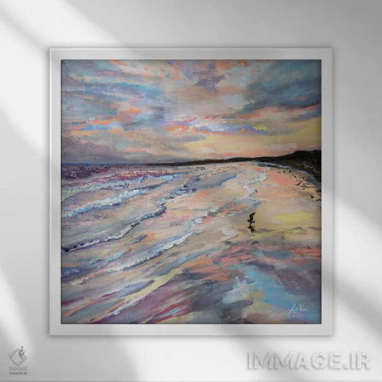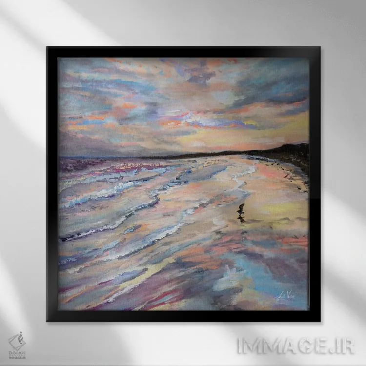 براساس پالت ترکیبی اثر، قاب بلوط روشن (چوبی) پیشنهاد اول است و استخوانی ملایم مکمل. برای سفارشهای پروژهای با ابعاد و قابهای اختصاصی با ایماژ در تماس باشید.