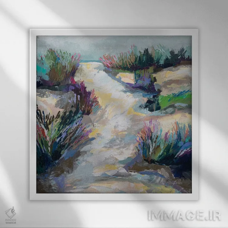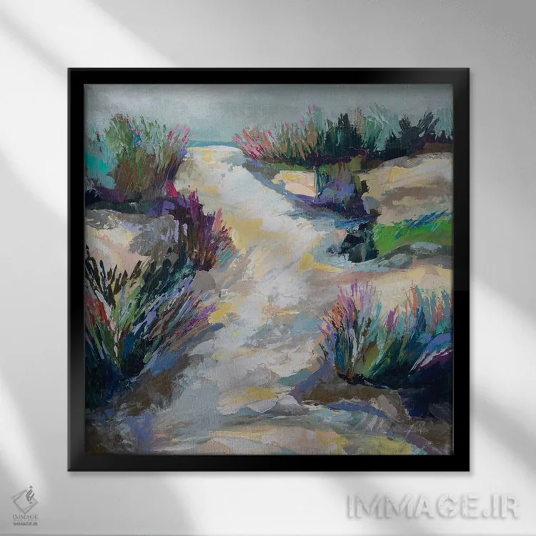براساس پالت ترکیبی اثر، قاب بلوط روشن (چوبی) پیشنهاد اول است و استخوانی ملایم مکمل. برای سفارشهای پروژهای با ابعاد و قابهای اختصاصی با ایماژ در تماس باشید.