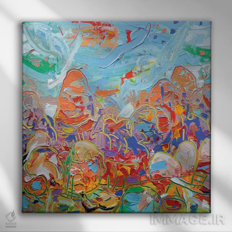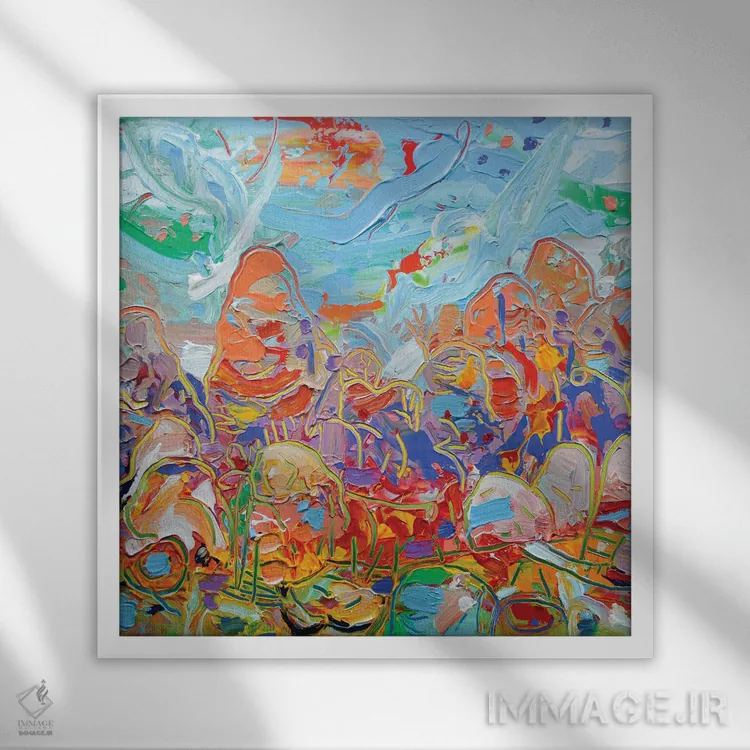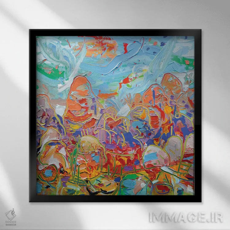 براساس پالت ترکیبی اثر، قاب تیک گرم (چوبی) پیشنهاد اول است و مشکی مات (فریم متوسط) مکمل. برای سفارشهای پروژهای با ابعاد و قابهای اختصاصی با ایماژ در تماس باشید.