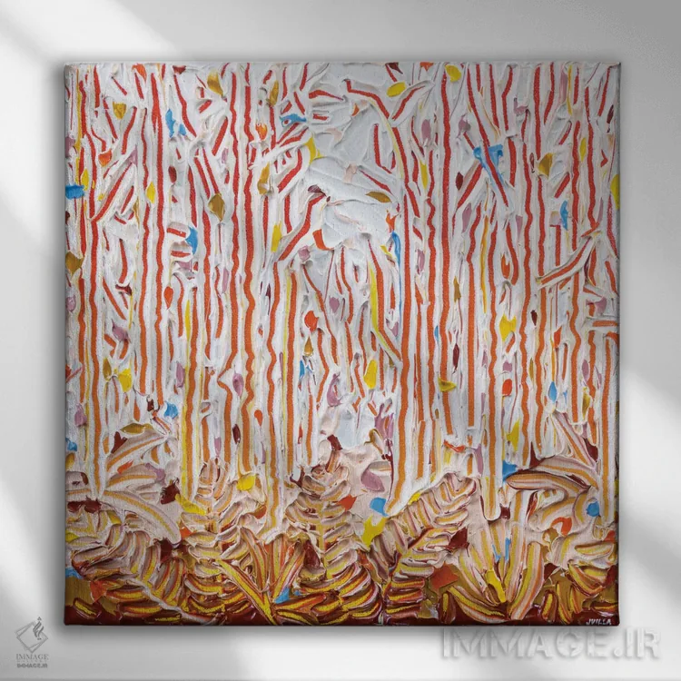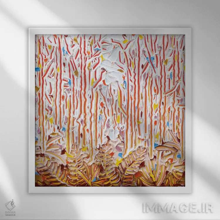براساس پالت گرم اثر، قاب تیک گرم (چوبی) پیشنهاد اول است و مشکی مات (فریم متوسط) مکمل. برای سفارشهای پروژهای با ابعاد و قابهای اختصاصی با ایماژ در تماس باشید.