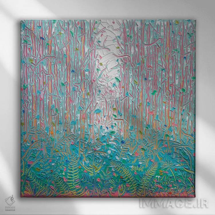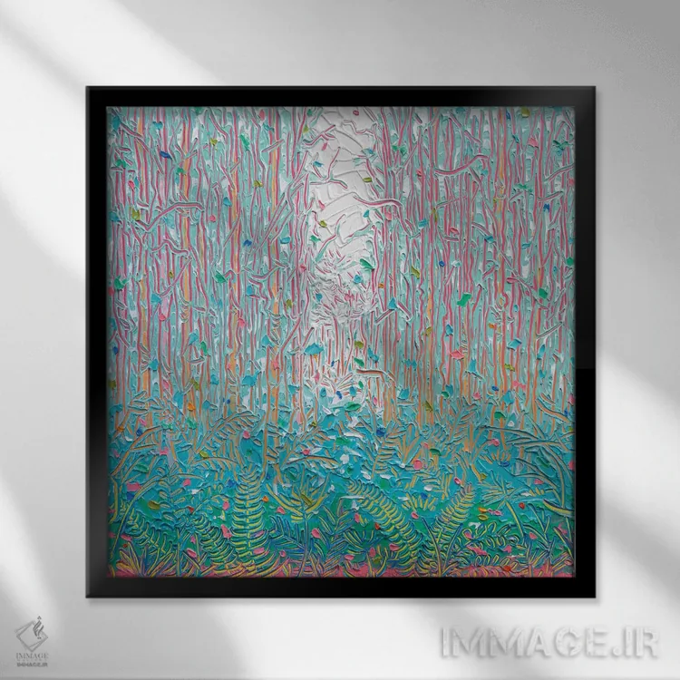 براساس پالت ترکیبی اثر، قاب تیک گرم (چوبی) پیشنهاد اول است و مشکی مات (فریم متوسط) مکمل. برای سفارشهای پروژهای با ابعاد و قابهای اختصاصی با ایماژ در تماس باشید.