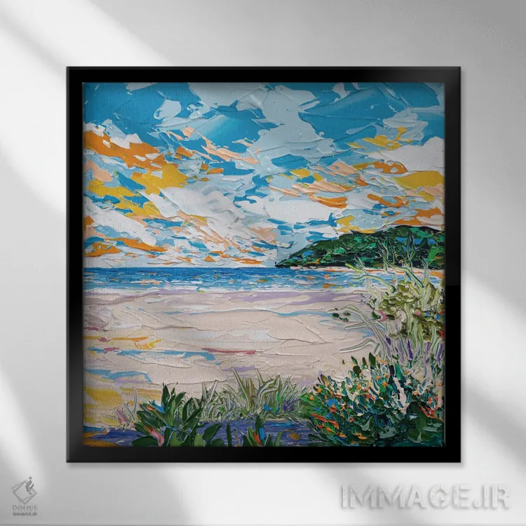 براساس پالت ترکیبی اثر، قاب تیک گرم (چوبی) پیشنهاد اول است و مشکی مات (فریم متوسط) مکمل. برای سفارشهای پروژهای با ابعاد و قابهای اختصاصی با ایماژ در تماس باشید.