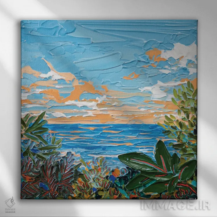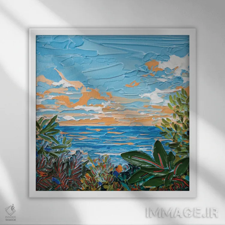 براساس پالت ترکیبی اثر، قاب تیک گرم (چوبی) پیشنهاد اول است و مشکی مات (فریم متوسط) مکمل. برای سفارشهای پروژهای با ابعاد و قابهای اختصاصی با ایماژ در تماس باشید.