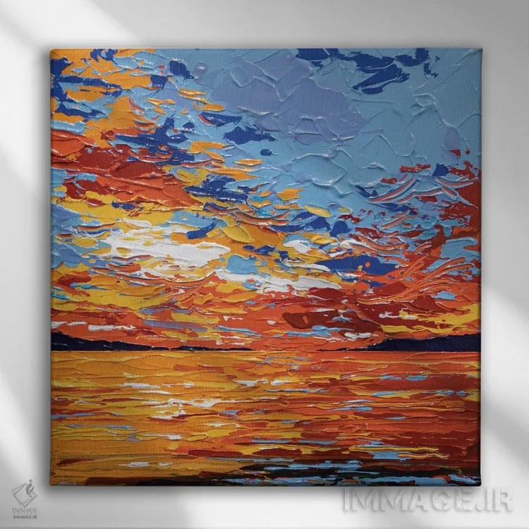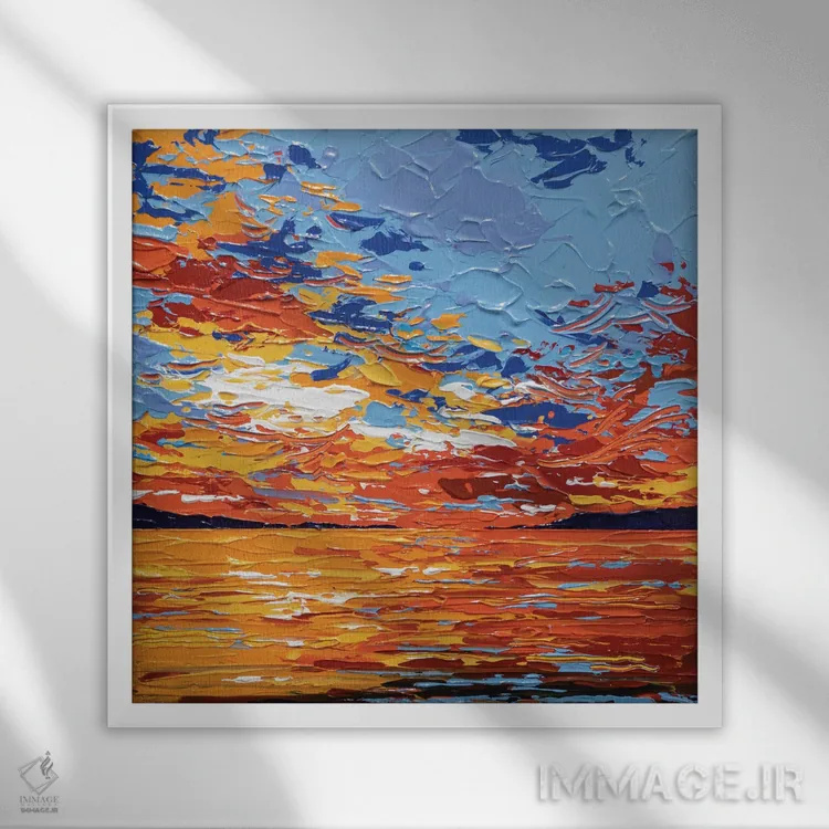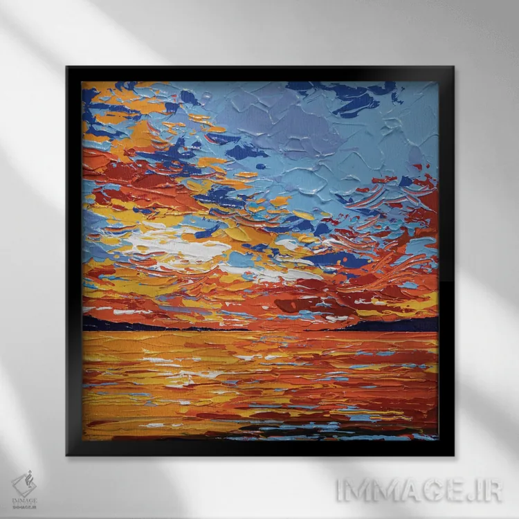 «دریای غروب III» اثرِ «جوزف ویلانوا» در قالب هنری، به فضا عمق و ریتم میدهد؛ برای کنار مبلمان ساده و نورپردازی گرم عالی است.