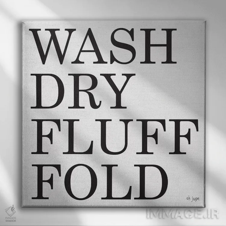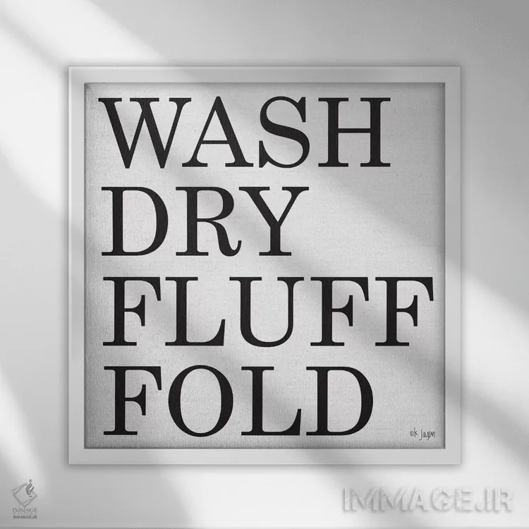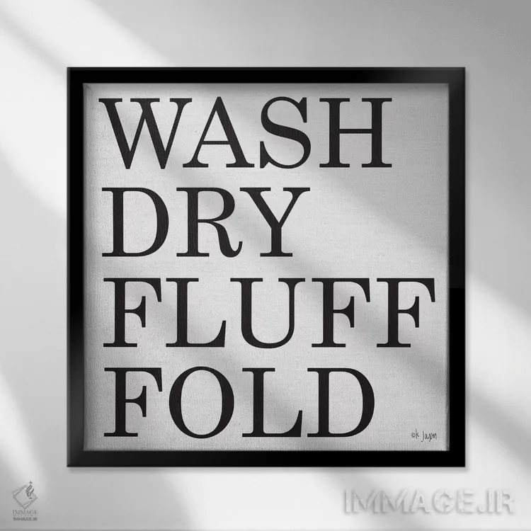 «بشوی—خشک کن—پرزدار کن—تا بزن (مراحل شستشوی لباس)» اثرِ «جکسون بلوار (برند هنری)» با رویکرد هنری، یک انتخاب شیک و تمیز برای دیوارهایی است که دنبال نظم و کنتراست پُرانرژی.