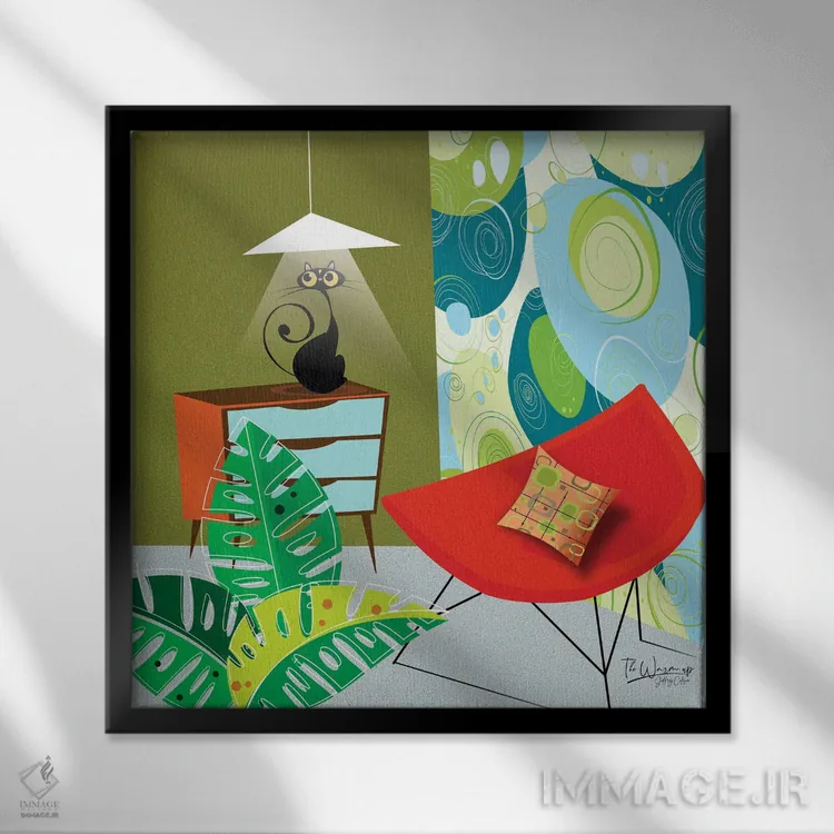 براساس پالت ترکیبی اثر، قاب تیک گرم (چوبی) پیشنهاد اول است و مشکی مات (فریم متوسط) مکمل. برای سفارشهای پروژهای با ابعاد و قابهای اختصاصی با ایماژ در تماس باشید.