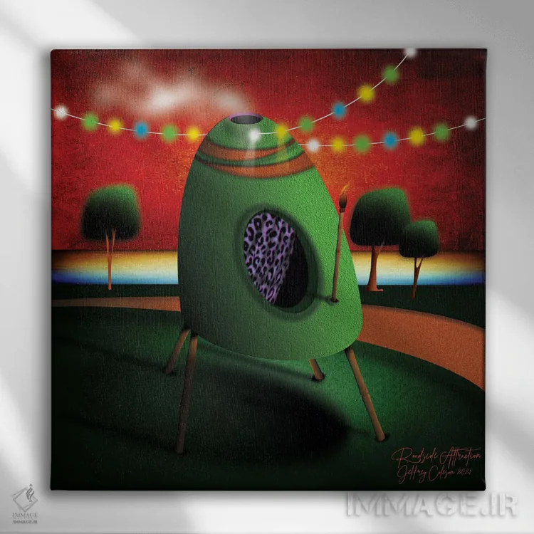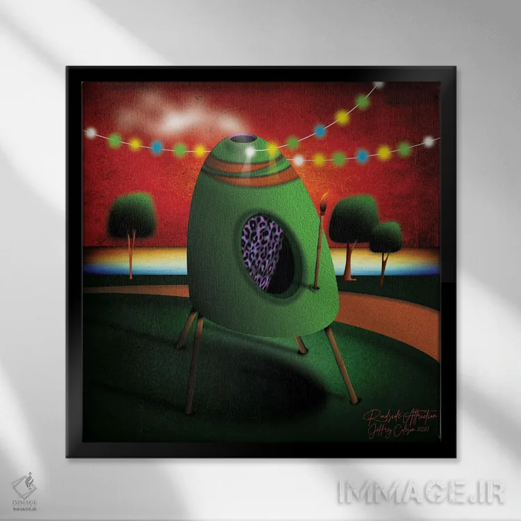 «جاذبه کنار جاده» اثرِ «جفری کولیسون» یک قاب شهری و مدرن است؛ موضوعِ این اثر با اجرای هنری، کنار مبلمان ساده خیلی خوب مینشیند.