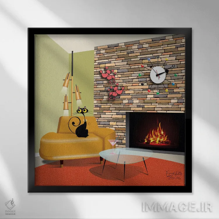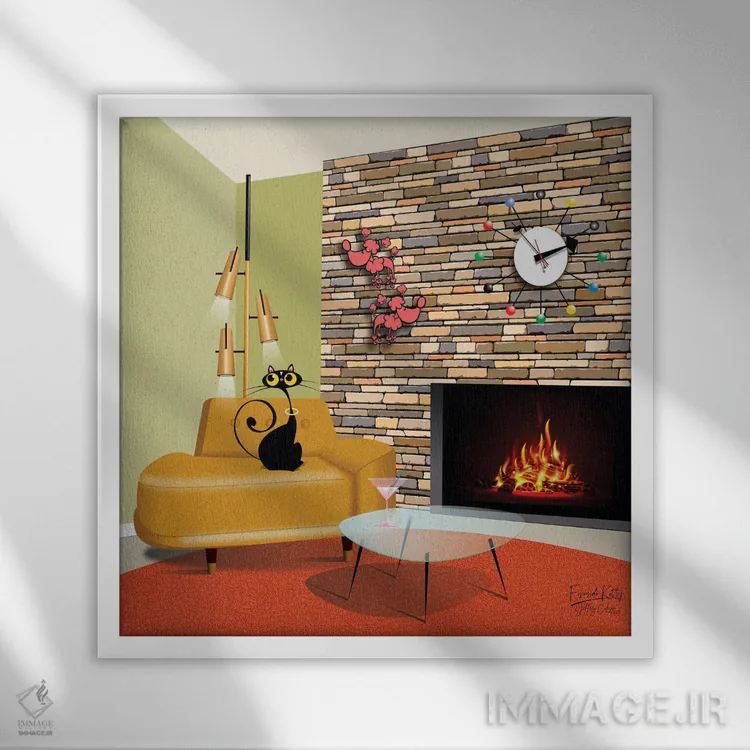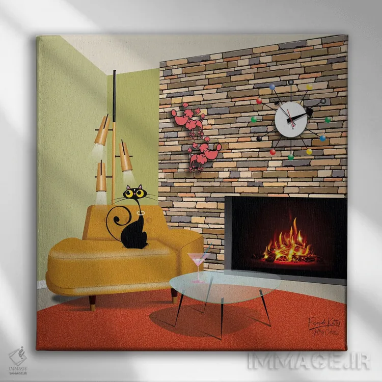 تابلو مدرن گربه کنار شومینه اثر جفری کولیسون