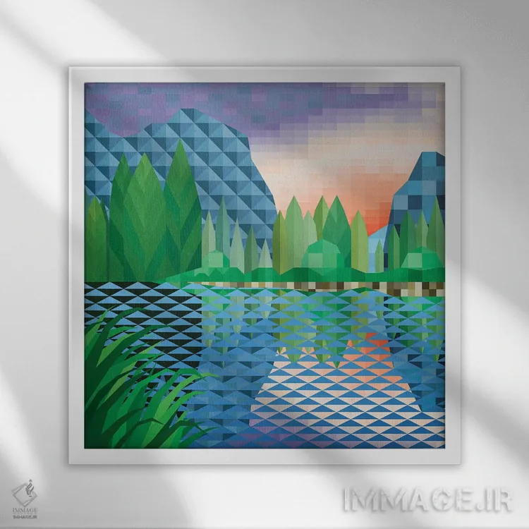«غروب کنار دریاچه» اثرِ «جون یونگجین» یک قاب گرم و قابل چیدمان است؛ برای خانههایی که دکور روستیک/کلبهای دارند، گزینهی مطمئن محسوب میشود.