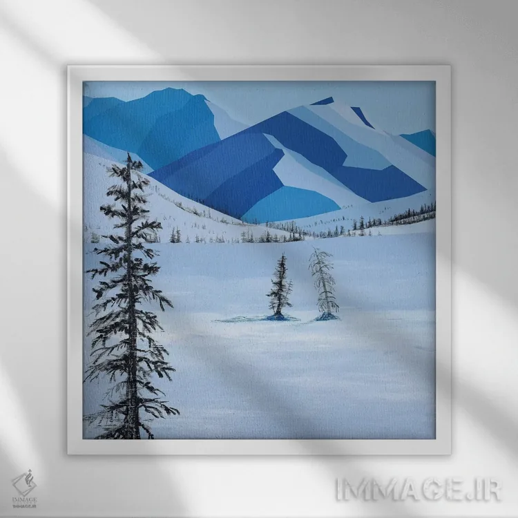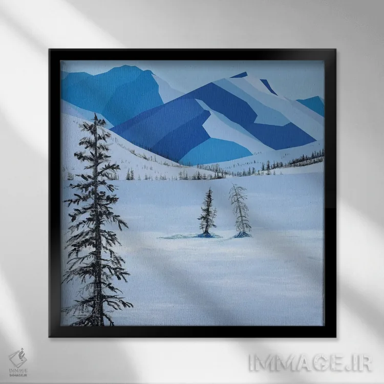 براساس پالت سرد اثر، قاب سفید مات (فریم باریک) پیشنهاد اول است و نقرهای برسخورده (متالیک) مکمل. برای سفارشهای پروژهای با ابعاد و قابهای اختصاصی با ایماژ در تماس باشید.