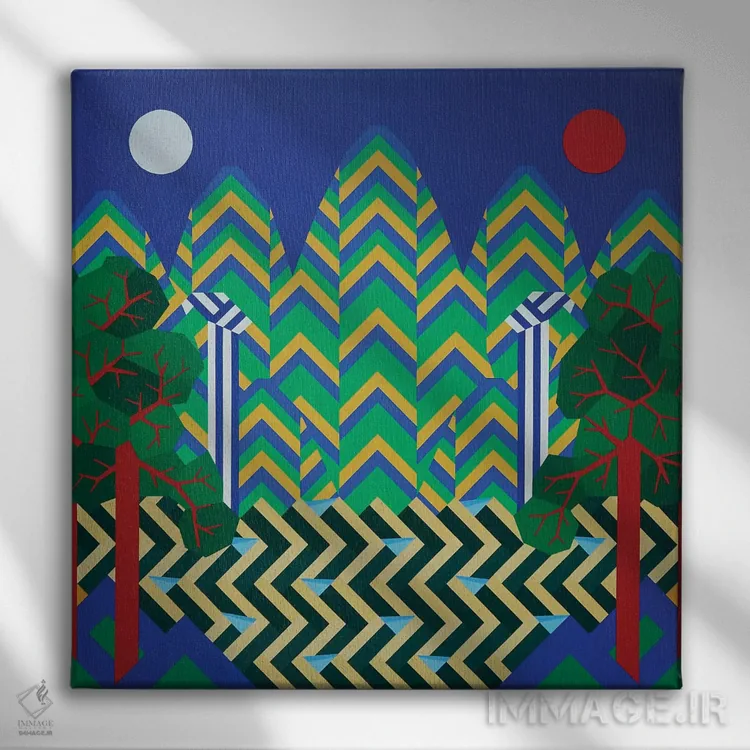 تابلو مینیمال خورشید و ماه و پنج قله اثر جون یونگجین