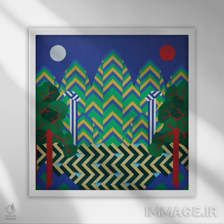 براساس پالت ترکیبی اثر، قاب تیک گرم (چوبی) پیشنهاد اول است و مشکی مات (فریم متوسط) مکمل. برای سفارشهای پروژهای با ابعاد و قابهای اختصاصی با ایماژ در تماس باشید.