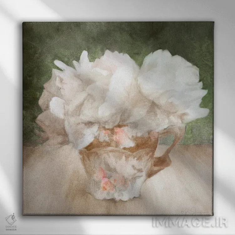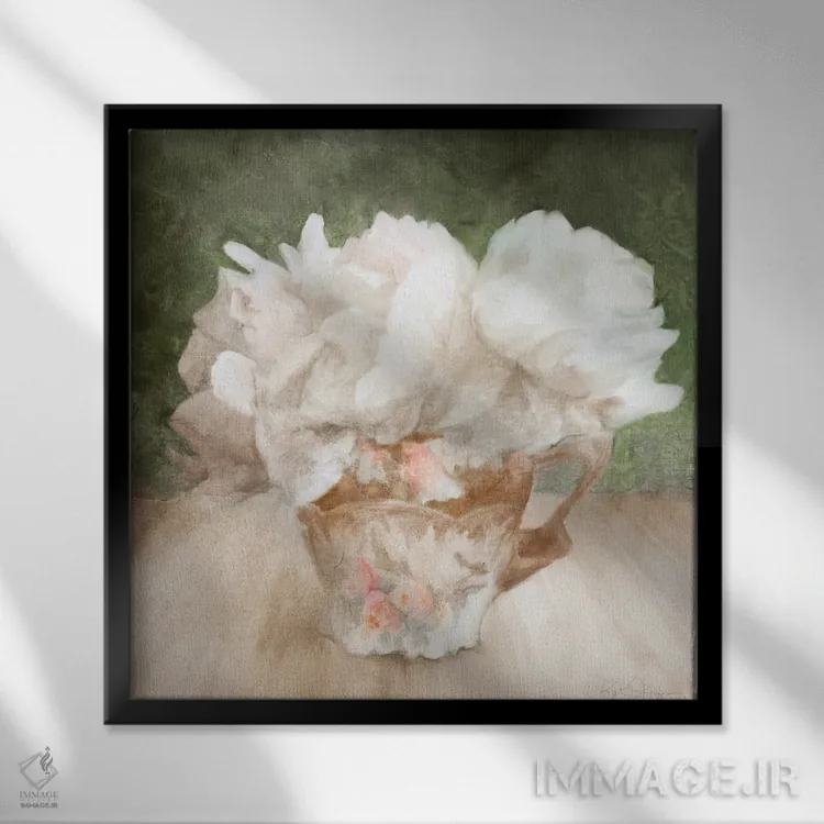 برای دیواری که میخواهید نرمتر دیده شود، «گلهای سفید پَرچین در فنجان چینی» اثرِ «کاترینا جونز» حس طراوت را بدون شلوغی وارد اتاق میکند؛ برای کافهها و فضاهای آرام انتخابی خوشسلیقه است. در کنار گیاهان آپارتمانی، هماهنگتر هم میشود.