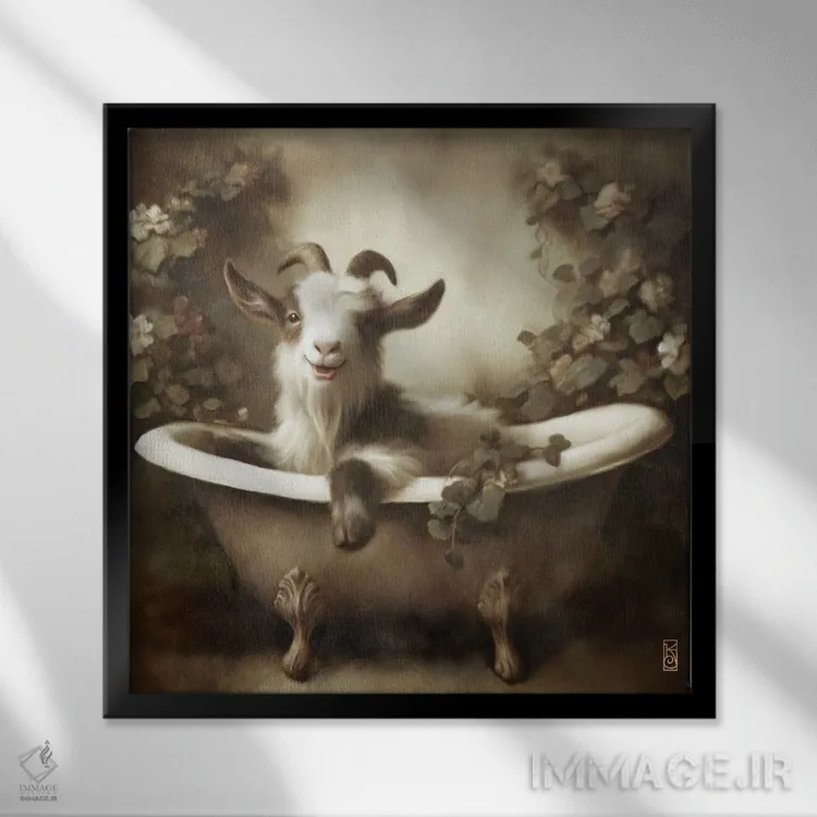 «بز زیبای در حال حمام» اثرِ «کاترینا جونز» میتواند به دیوار، انرژیِ نرم و زنده بدهد؛ برای دکورهای مدرن و مینیمال پیشنهاد میشود. حسش صمیمی است، اما کیفیتش جدی و خوشپرداخت.