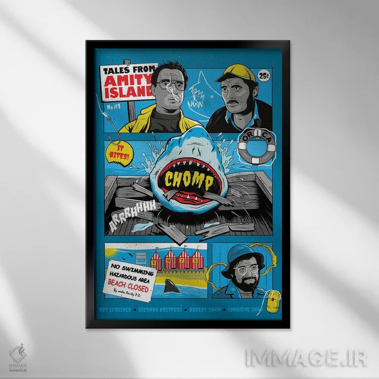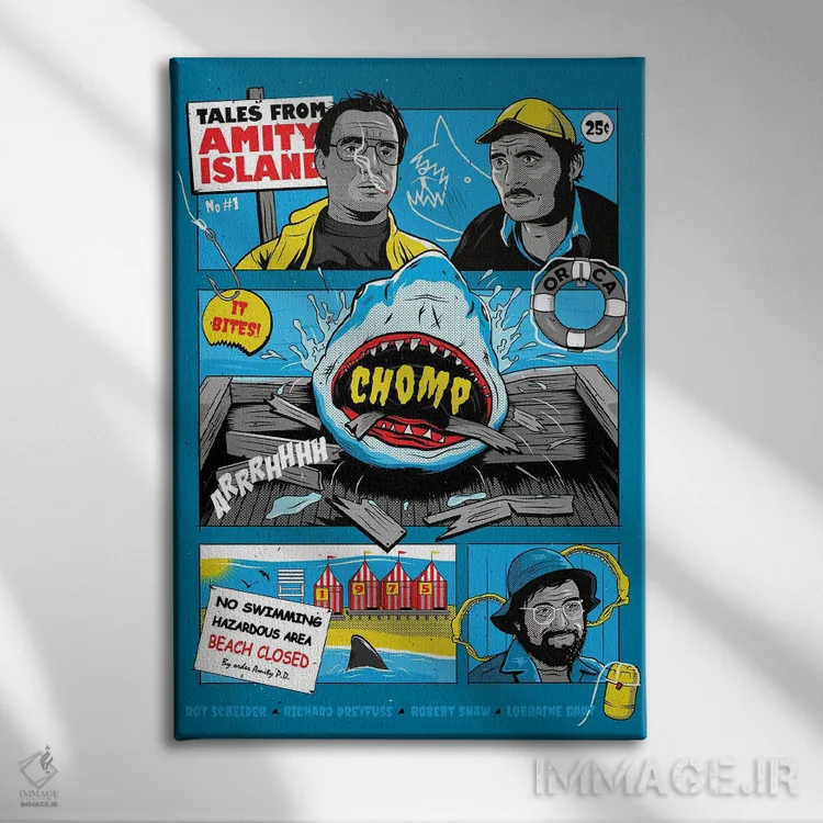 این اثر با عنوان «آروارهها (فیلم)» اثرِ «کریس ریچموند»، تمیز و دقیق است؛ مناسب دیوارهای مینیمال.