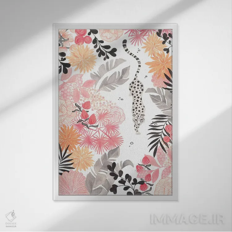 تابلو دکوراتیو کاغذ پلنگ در حال کمین با زمینه کاملا سفید اثر کریتینگ تارین