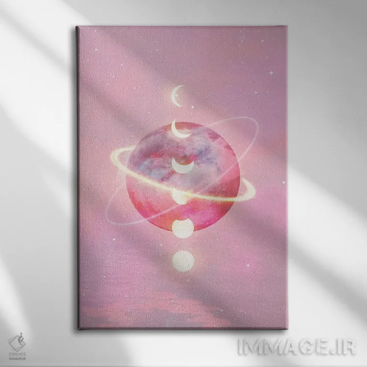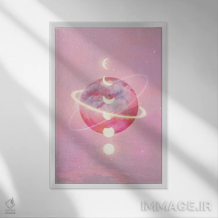 تابلو مدرن ماه و سیاره صورتی اثر امانوئلا کاراتونی