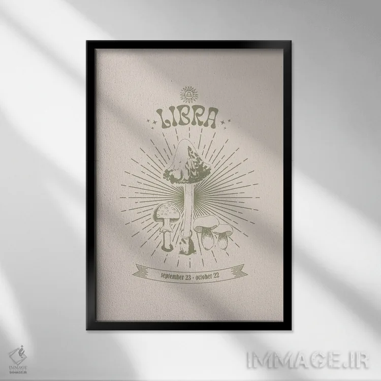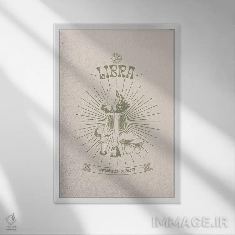 تابلو دکوراتیو قارچ های زودیاک میزان اثر امانوئلا کاراتونی - نمای قاب‌دار سفید