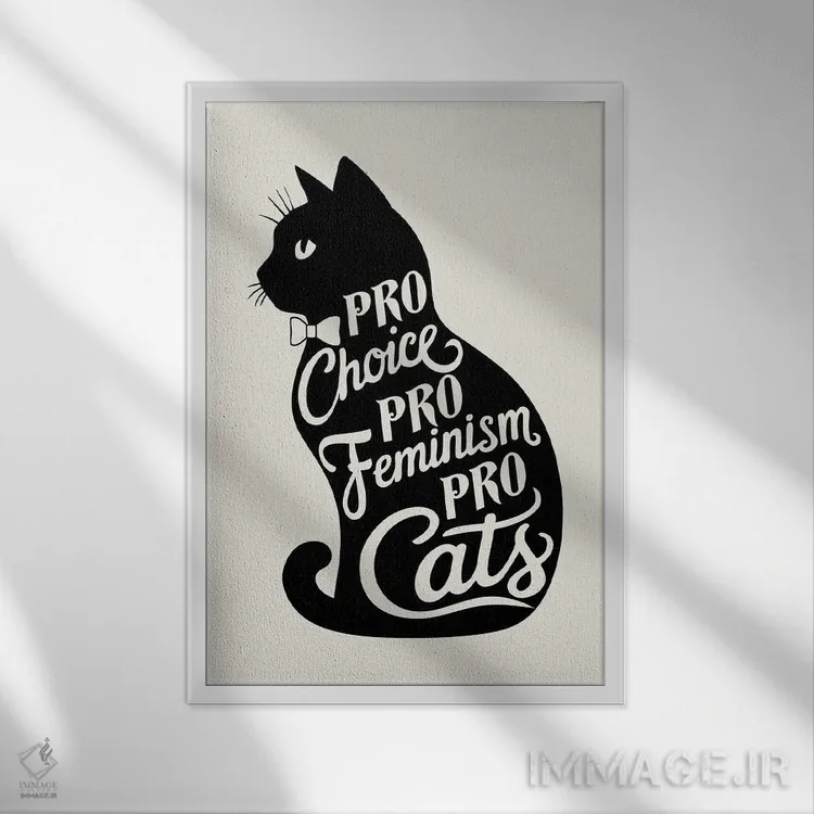 «حامی انتخاب، حامی فمنیسم، حامی گربهها» اثرِ «امانوئلا کاراتونی» یک قاب مدرن و خوشفرم است؛ موضوعِ این اثر در اجرای هنری خوانا و سئوپذیرِ دیواری میشود.