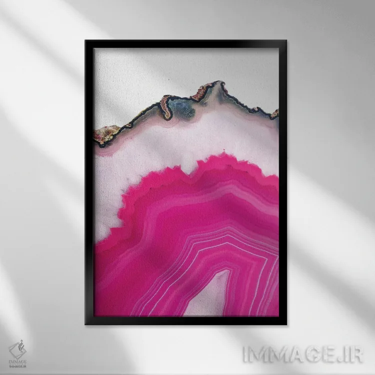 تابلو انتزاعی برش عقیق صورتی اثر امانوئلا کاراتونی - نمای قاب‌دار مشکی