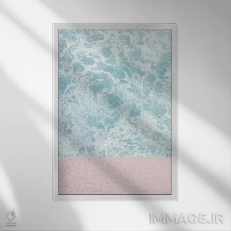 تابلو مینیمال صورتی بر روی دریا اثر امانوئلا کاراتونی - نمای قاب‌دار سفید