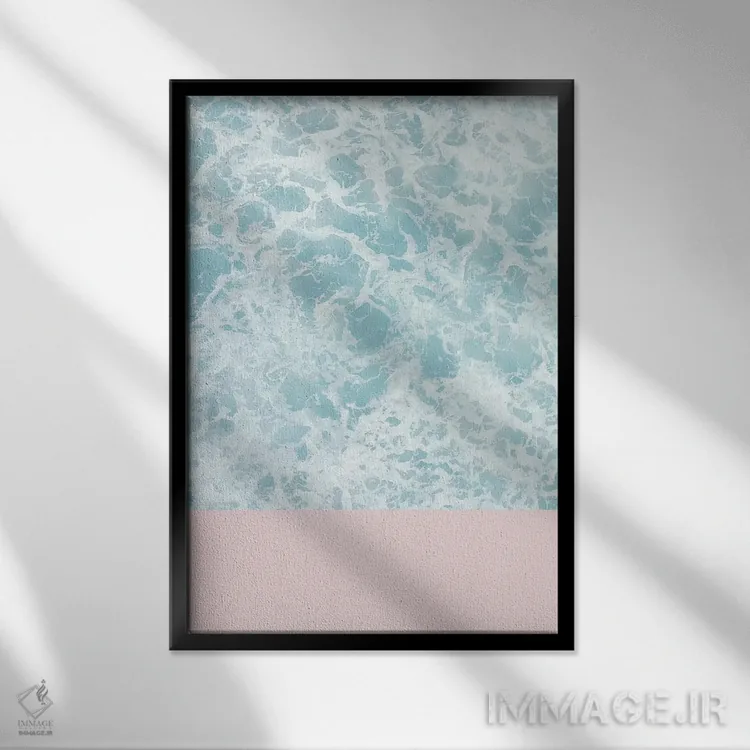 تابلو مینیمال صورتی بر روی دریا اثر امانوئلا کاراتونی - نمای قاب‌دار مشکی