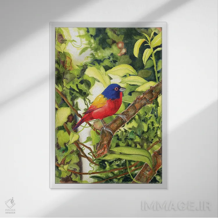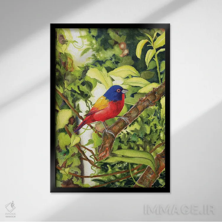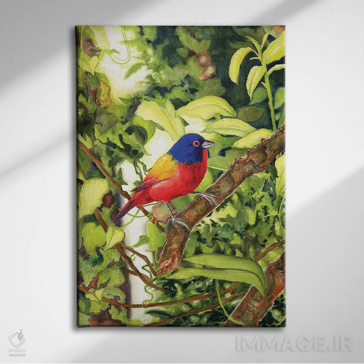 «پینتد بانتینگ (پرنده رنگارنگ)» اثرِ «کریستین ریشو» از آن کارهاییست که حس طبیعت را بیدغدغه وارد خانه میکند؛ برای اتاق کودک (بدون لحن کودکانه) انتخاب خوبیست. در کنار گیاهان و نور طبیعی، جذابتر هم میشود.